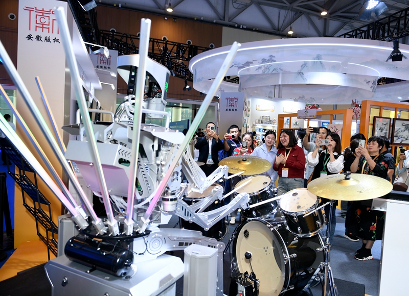 中安在线、中安新闻客户端讯 机器人鼓手敲击未来节拍;“神笔马良”挥洒创意画卷;AI技术守护版权创新成果……10月16日至18日,在第十届中国国际版权博览会安徽展区,一系列硬核科技与创新应用,生动演绎了数字时代版权的创造、运用与保护全链条,勾勒出一幅“皖”美数字版权新图景。