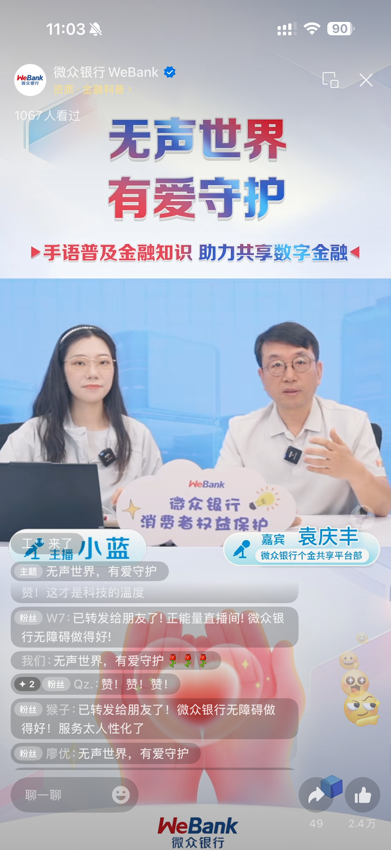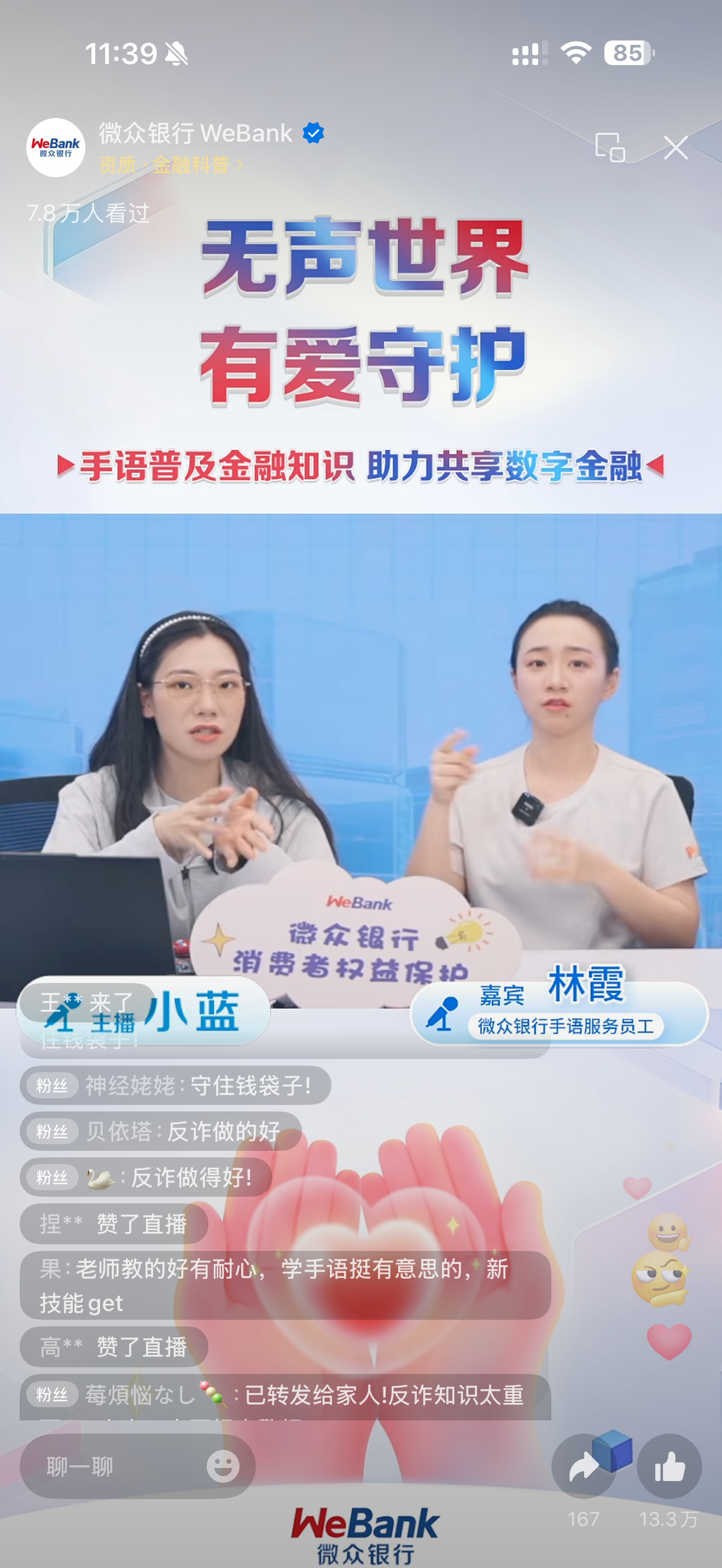 无声世界·有爱守护 微众银行消保专场直播吸引12.3万人次观看