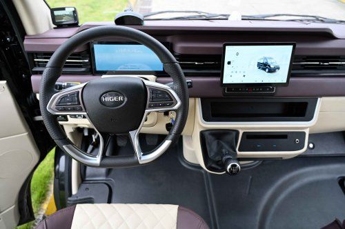 针对高端商务接待、移动会议等场景,“海格公路和谐号”则聚焦于极致舒享与高效协同。其核心亮点在于开创性的“1+1、2+1大商务座椅”布局与全车智能交互系统。宽绰的座椅空间、顶级材质与符合人体工学的设计,确保了长途乘坐的绝对舒适。集成化的智能座舱、语音交互、多功能娱乐显示屏及高端商务办公桌,将车厢无缝转换为一个功能完备的移动办公室或会议室。此外,定制星空顶、冰箱、饮水机、雨伞、无线充电等细节化、管家式的贴心配置,处处彰显尊贵品味与人文关怀,重新定义了高端移动商务出行的标准,满足了政企客户对商务出行私密、高效、尊崇的复合型需求。