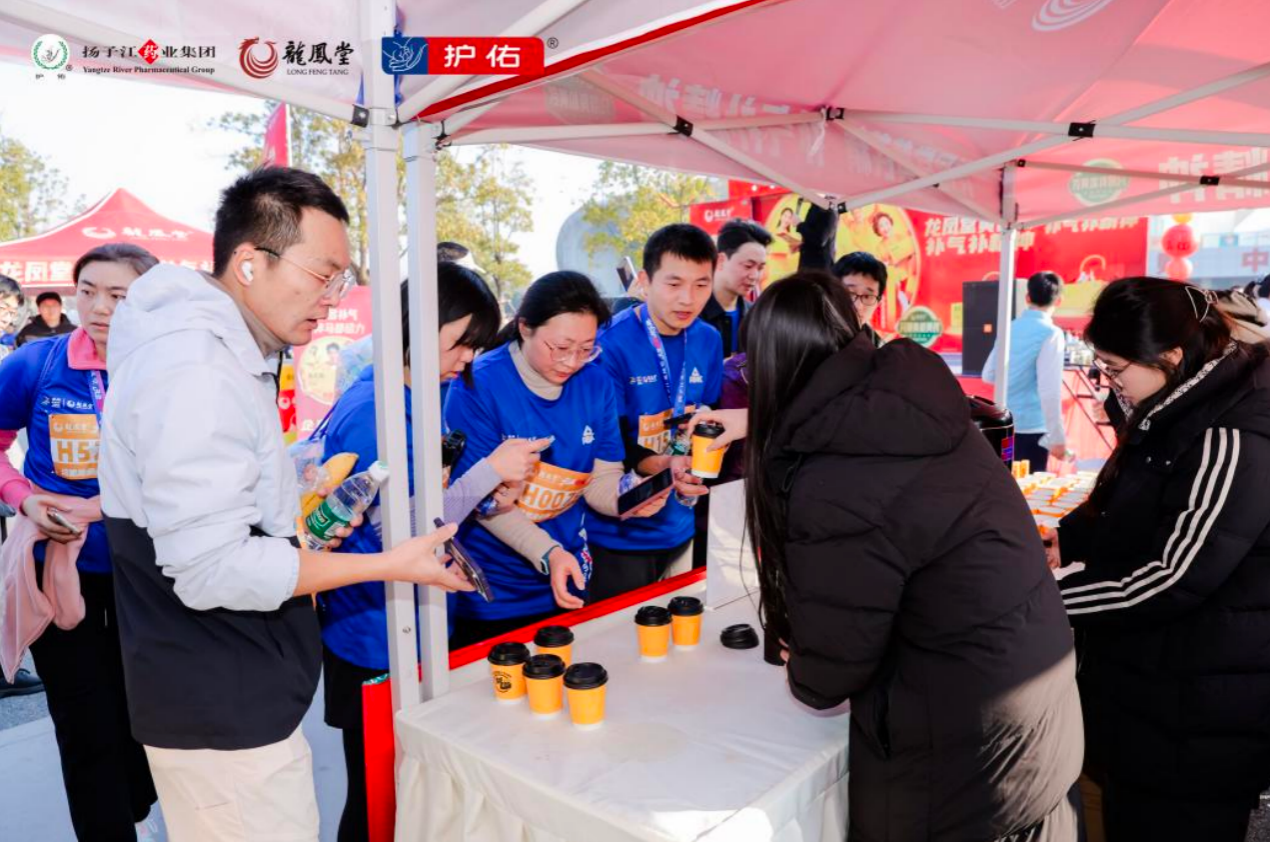 活动现场设置的有机黄芪滋补市集更成为一大亮点,扬子江带来的健康产品与特色健康服务为跑友们精准“续航”。黄芪咖啡、芪力饮等饮品的试饮展台前排起长队,成为跑后恢复精力的“移动加油站”;仿生贴体验、碰一碰对话“补气小管家”等互动服务将健康关怀送到跑友身边;专为节日打造的龙凤堂黄芪精新年礼袋,更契合了市民走亲访友送健康的需求。正在咨询选购产品的李女士坦言:“和孩子一起跑步迎新年很有意义,跑完还能现场选购健康礼品,这份新年祝福特别实在。”