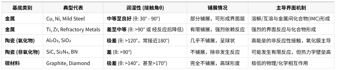 参与界面反应:与基底材料发生化学反应,生成新的界面相,改变固体-液体界面能 (γ_sl)。