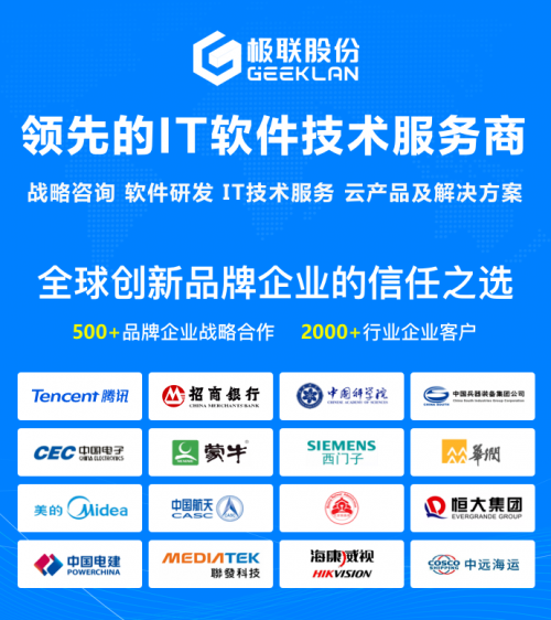 极联股份是国内领先IT软件技术服务商,极联股份致力于为客户提供全方位的综合IT技术服务,公司在深圳、广州、北京、上海、成都、杭州、西安、武汉、香港等20余城市设有分支机构,挂牌代码681396。极联股份为客户提供战略咨询、云产品及解决方案、软件研发、物联网及人工智能服务,行业涉及IT互联网、物联网、金融、通信、能源、高端制造业、教育、物流、医疗等领域。极联股份以客户满意为奋斗目标,已服务了腾讯、招商银行、顺丰、华润集团、中国电子、中国兵器集团、联发科、中科院、中国航天科技集团等近千家品牌企业,通过提供专业可靠的软件技术服务及云产品,赢得客户的好评,并与众多大型客户建立长期战略伙伴关系。