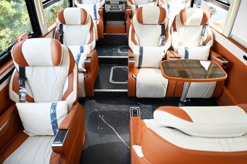 当下,旅游市场正经历从“传统跟团游”向“高端私人定制游”的结构性转变。“海格公路和谐号”精准洞察这一市场变化,以前瞻性的产品定位直击行业痛点。车内精心布局“2 + 1”或“1+1”大商务座椅,选用顶级舒适材质,依据人体工学原理进行设计,具备多角度调节功能,让乘客能够轻松找到最惬意的坐姿,在旅途中尽情放松身心;定制星空顶搭配智能氛围灯,可灵活切换色彩、亮度,将科技与艺术完美融合,点点星光营造出如梦如幻的氛围,增添浪漫与温馨,尽显格调品味;贴心配备的高端商务办公桌,为移动商务场景量身打造,乘客可以在旅途中处理工作事务,实现工作与旅行的完美平衡;高级定制空调出风口,精准调节风向与风量,应用超级静音技术,营造舒适静谧的乘车环境。
