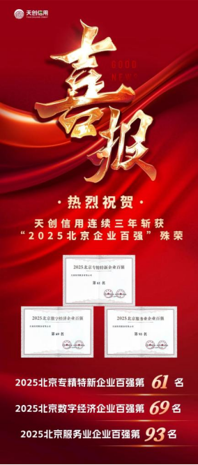 天创信用入选“2025北京企业百强”榜单,助力构建现代化产业信用体系