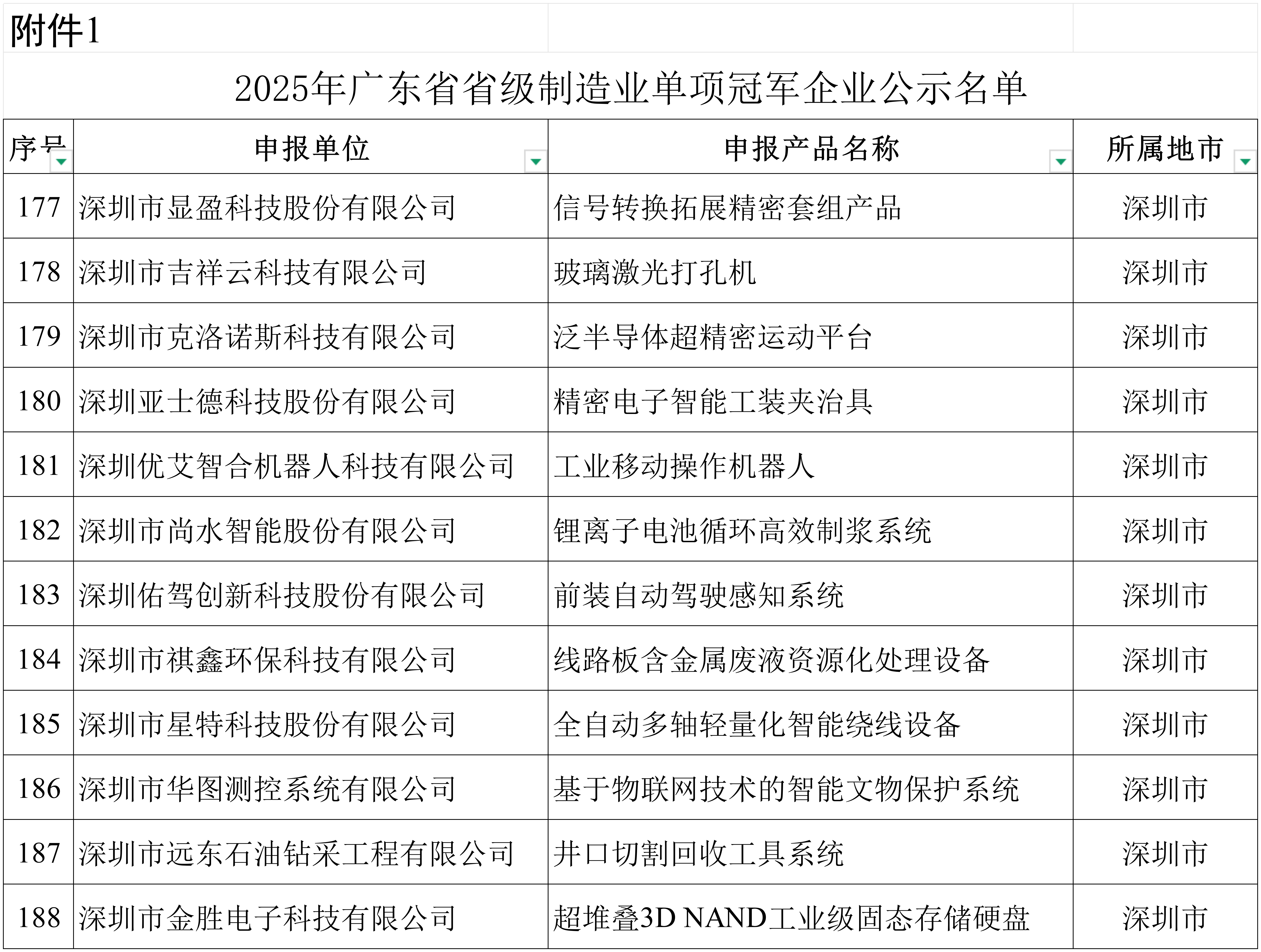 近日,广东省工业和信息化厅公布2025年广东省省级制造业单项冠军企业名单。优艾智合凭借在工业具身智能领域的技术创新及规模化场景落地能力,成功入选。