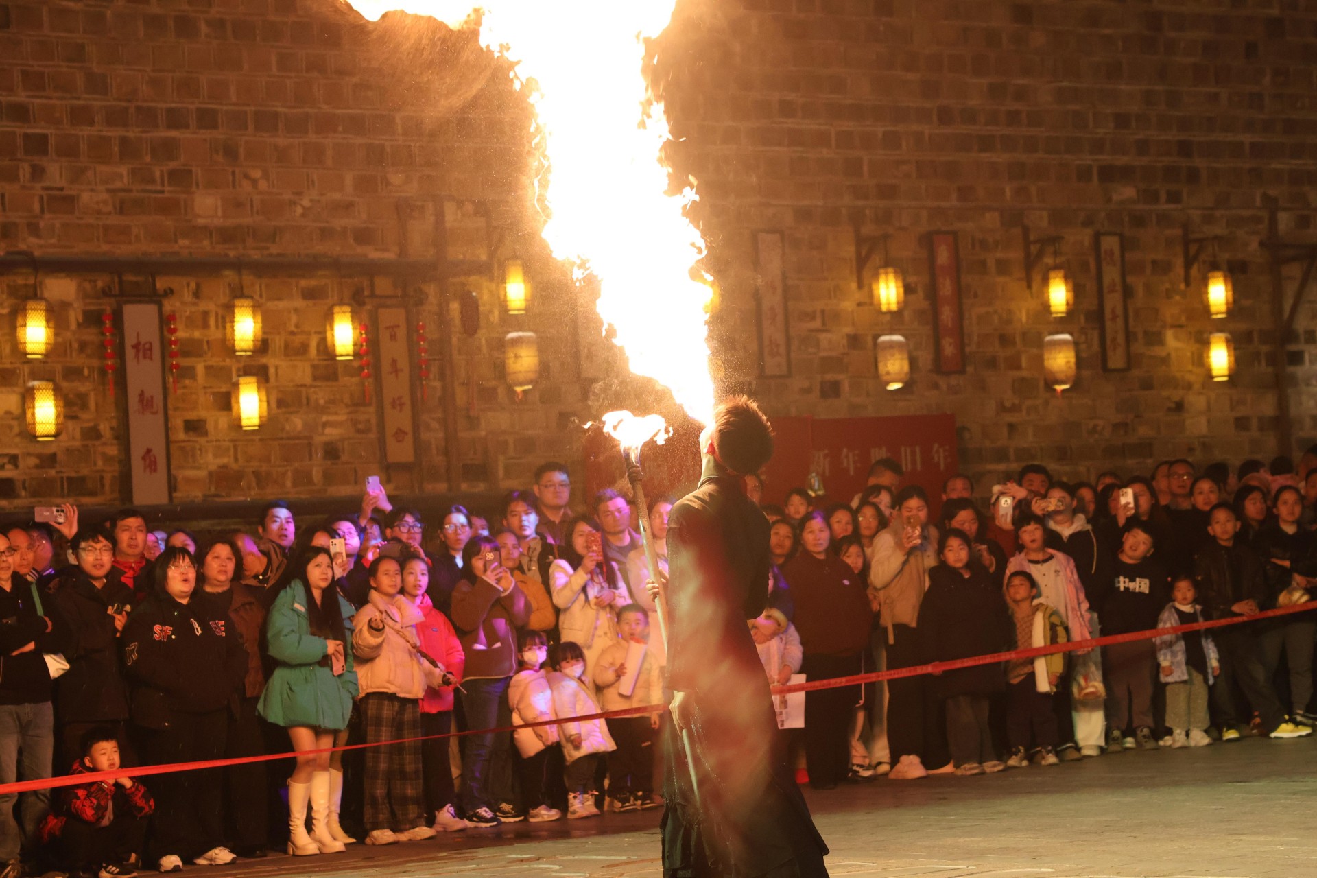 1月17日晚,明清古巷月明广场华灯初上,“拾光之旅,巷聚未来”周年庆典温情启幕。活动在极具地方特色的《资水古巷》舞蹈中拉开序幕,经典花鼓戏《刘海砍樵》、创意舞蹈《玲珑奇遇》以及精彩的《火壶》《喷火》等火艺表演接连上演,让传统非遗与现代表演艺术在夜色中交相辉映。