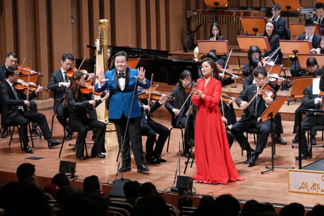 本场音乐会由青年指挥家林木森执棒成都交响乐团演出,曲目设计兼具艺术性与叙事性。《欢庆序曲》《春之声圆舞曲》洋溢新春喜悦,影视金曲《阿甘正传》《绒花》唤起情感共鸣,女高音张怡与男高音朱智的经典歌剧选段更是掀起阵阵高潮。