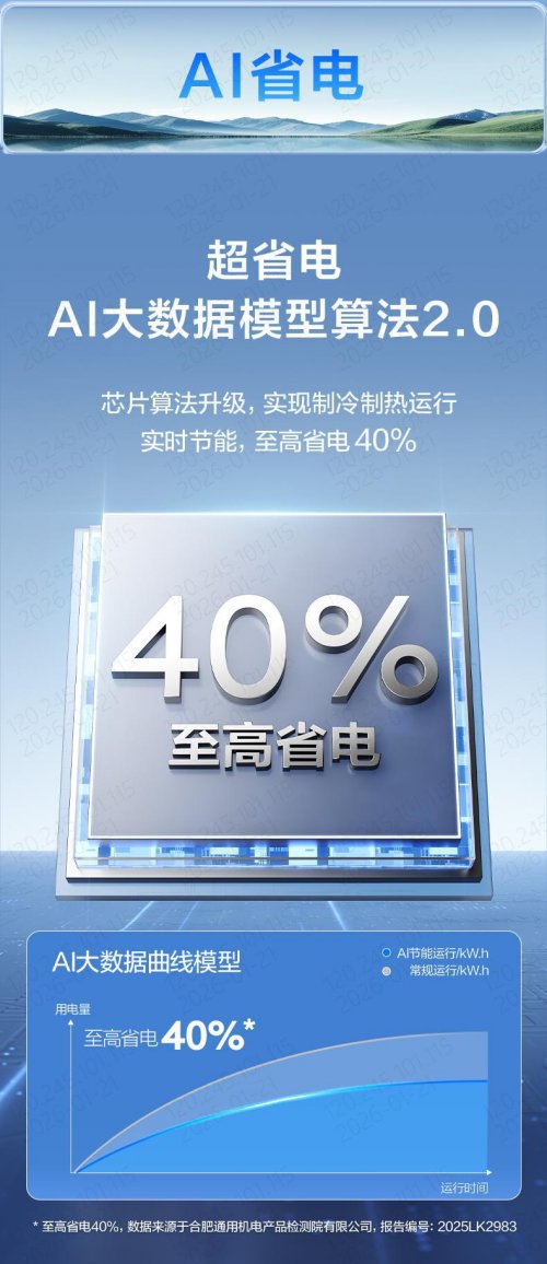 同时,其AI省电功能,搭载超省电AI大数据模型算法2.0,通过芯片算法的持续学习优化,空调能根据实际使用习惯、室内外温差等复杂参数实时调节最优运行方案,实现至高省电40%,APF值高达4.15,将能效与舒适合二为一。这解决了高端用户“追求舒适却顾虑能耗”的核心矛盾。