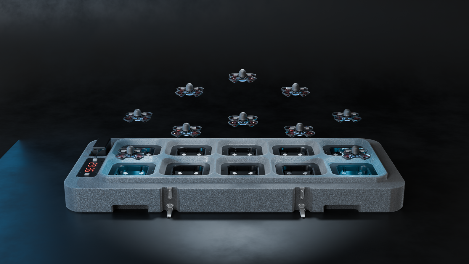 智能起降系统支持箱式起降与自动快充,能够快速组网并具备自动编号功能。这一设计彻底改变了表演流程——无人机不再需要占据舞台空间进行人工摆放和调试。