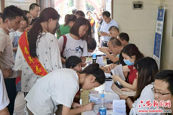 8月21日上午,六安市裕安职业学校内人头攒动,2020级新生在家长的陪同下洋溢着幸福的笑容,徜徉宽敞舒适的校区。该校为新生能够顺利报到也做了精心筹划、细心安排,用心服务,学校积极做好常态下疫情防控。家长及新同学在志愿者的指引下,有序来到高职护理、老年服务与管理、航空服务等专业报道处完成报名,正式开启他们的新征程。据了解,六安市裕安职业学校是裕安区重点发展的公办全日制中等职业学校,学校集全日制教育、成人教育和技能培训为一体,承担裕安区公办职业教育全部任务。学校先后荣获“裕安区职业教育先进集体”、“六安市职业教育先进集体”、“平安校园建设先进单位”、“六安市禁毒示范学校”、“六安市五四红旗团委”等称号,六安市裕安职业学校已发展成为裕安职业教育的排头兵。(记者 隋文进)