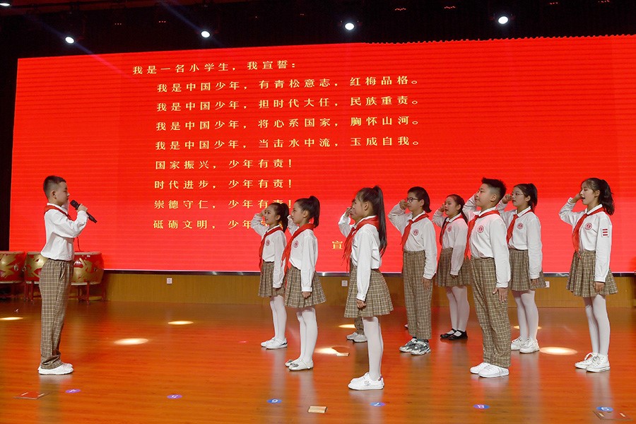 9月3日,六安市皋城小学通过举办学党史、师生宣誓、为“至美家庭”“至美学生”颁奖、歌舞表演、分享生日蛋糕等不同形式,热烈庆祝学校建校一周年。据了解,六安市皋城小学位于六安主城区梅山北路与解放路交叉口,占地面积60亩,建筑面积28950平方米,是2019年市委市政府投资1.3亿元重点打造的城区公办小学。(记者 隋文进)