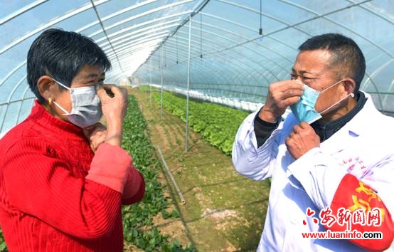 2020年2月17日,安徽省六安市裕安区城南镇“三员”流动服务队队员在该镇周湾村蔬菜扶贫示范基地走访。