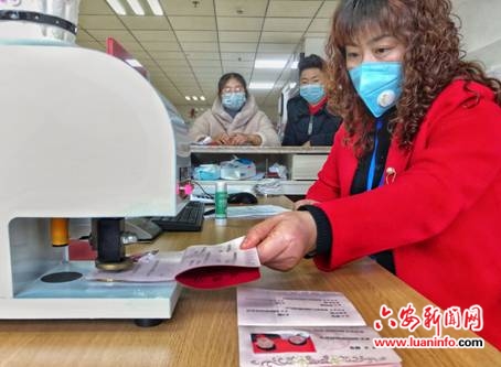 2月27日,金安区民政局婚姻登记处,工作人员在为一对新人办理结婚登记手续。据了解,金安区婚姻登记处结合当前疫情防控实际,采取先电话预约、备齐申请材料、佩戴口罩、体温测量合格、按预约顺序分时段每天接受30对新人办理婚姻登记业务。据悉,目前我市部分县区根据各地疫情实际,在陆续恢复婚姻登记办理时,取消颁证仪式等聚集性服务,现场为新人增加了消毒、体温测量等防护措施,新人们表示:戴着口罩办理婚姻登记场景虽然特别,但甜甜的爱情并没有因此减分,显得更有意义。皖西日报融媒体记者田凯平摄