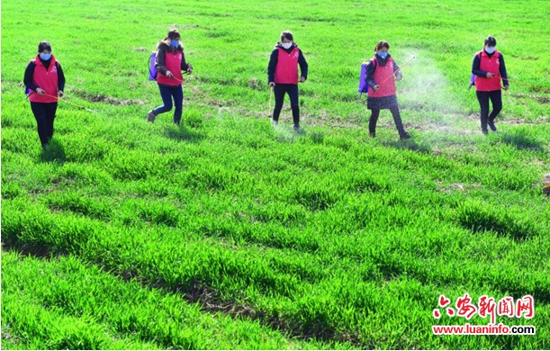 青山乡宋岗村防疫"红色娘子军"背箱打喷除草剂