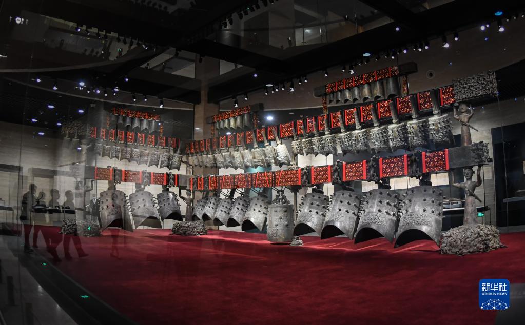 2021年12月20日,湖北省博物馆新馆开馆。这是参观者观赏曾侯乙编钟。新华社记者 程敏 摄