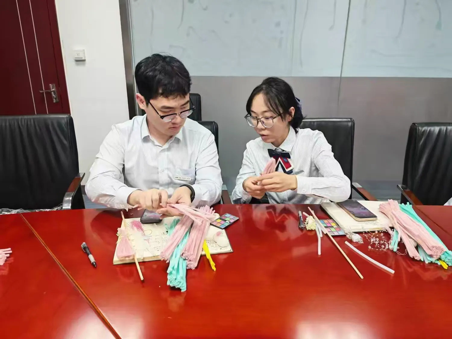 理论学习结束,活动进入了富有创意和实践意义的环节-一手工制作莲花灯。在团支部的细致安排下,青年员工们纷纷动手,投入到莲花灯的制作中。从折叠花瓣、固定灯架,到组装成型、点亮烛光,每一步骤都需耐心与细致。大家互帮互助,巧手翻飞,原本零散的材料逐渐化为一盏形态各异、寓意深远的“廉”灯。当一盏盏象征着清正廉洁的莲花灯在手中次第“绽放”,柔和的光晕不仅照亮了现场,更仿佛照亮了每个人心中的廉洁准则。制作过程不仅锻炼了青年员工的动手能力和协作精神,更让廉洁理念如同这亲手制作的莲花灯一般,从抽象的符号转化为可触可感的实体,在轻松愉快的氛围中潜移默化地内化于心。