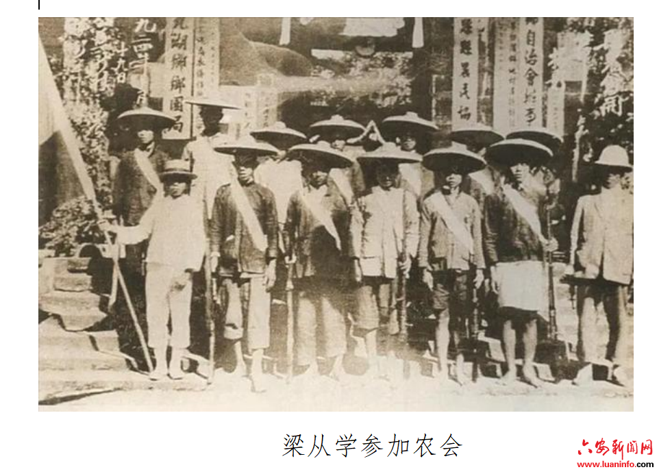 1903年5月,梁从学出生于武陟山(今安徽省六安市裕安区分路口镇境内)山脚下一户贫穷农家。虽然明知没有能力供孩子上学读书,但父亲仍给他起名从学,渴望他能够读书成才,走出这穷山背凹。和绝大多数穷人家的孩子一样,9岁的梁从学不得不到附近一户地主家放牛谋生。稍大点后,他又去地主家当雇工,干着烧酒、做挂面等杂活。正当前途一片黑暗,皖西党组织派人来到武陟山开展农民运动,这给迷茫中的梁从学带来了希望。已长成大小伙的梁从学很快加入农会,1929年11月参加六霍起义,并于同年光荣入党。不曾想这个放牛娃竟成了日后战功赫赫的开国中将。走上革命道路后的梁从学作战勇猛,每战必冲锋在前,令敌胆寒,先后9次身负重伤,身上留下了13个枪眼,人送名号“梁老虎”。大家知道更多的是梁从学的勇猛,实际上他还是个善于斗争的智多星,在很多危急关头都能机智化险,是一位集勇敢与智慧于一身的出色战将。