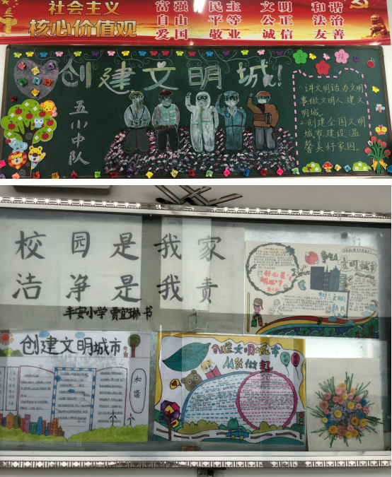 丰安小学以文明创建和喜迎国庆为主题,开展班级板报、橱窗文化建设评比活动