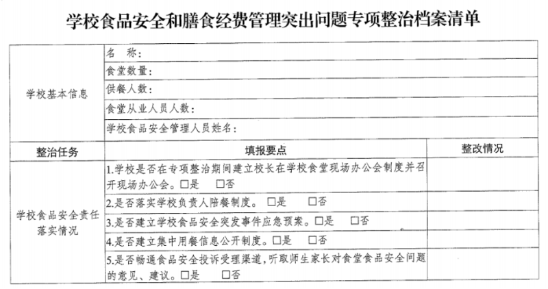 1.学校食品安全和膳食经费管理突出问题专项整治档案清单