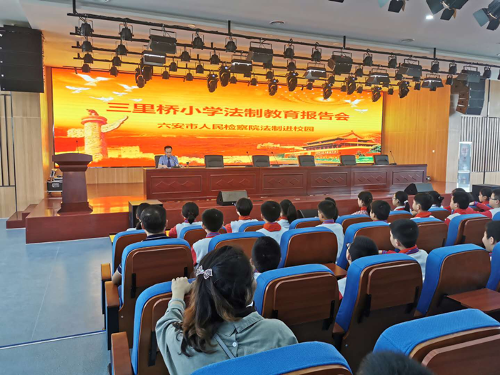 为深入贯彻落实《预防未成年人犯罪法》和《未成年人保护法》,提升未成年人思想道德水平和法律素养,9月18日下午,三里桥小学光明路校区开展了法制教育进校园活动。