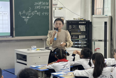 丁慧老师展示的是三年级上册《一天的时间》。丁老师以一个脑筋急转弯开课,制造认知冲突激发学生的探究欲望,思路清晰、逻辑分明,在一个个问题的引领下明白道理,借助“时间尺”突破难点,巧妙地搭建起学生认知的桥梁,建立12时计时法和24时计时法之间的联系。