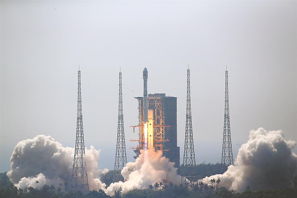 2月27日11时06分,我国在文昌航天发射场使用长征八号运载火箭成功将22颗卫星发射升空,创造我国一箭多星新纪录。 新华社发(屠海超 摄)