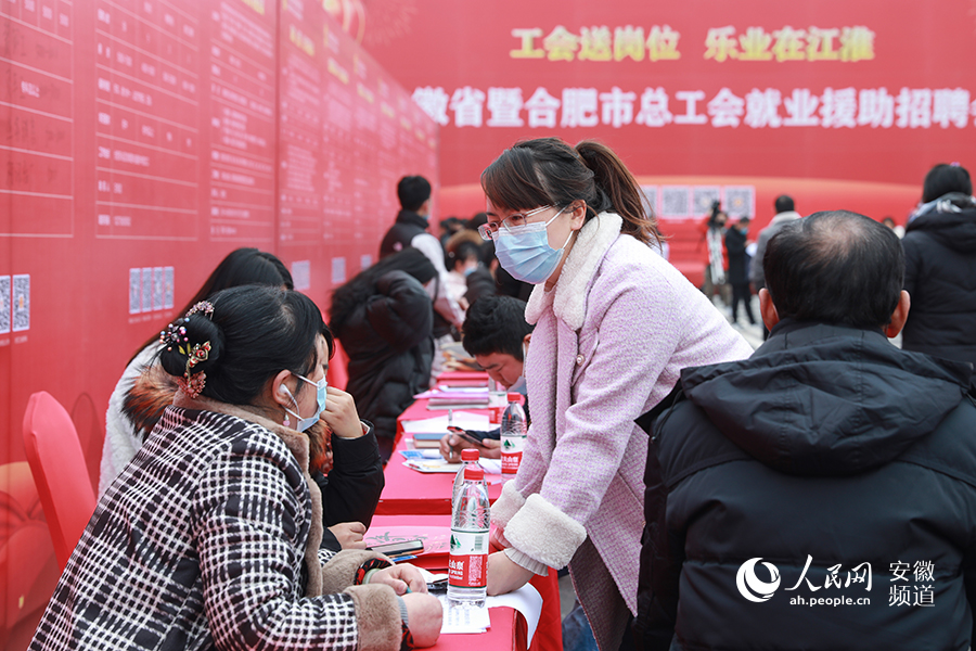 新春一上班,安徽各地积极开展就业援助招聘活动。人民网 张俊摄为民办实事 办到心坎里