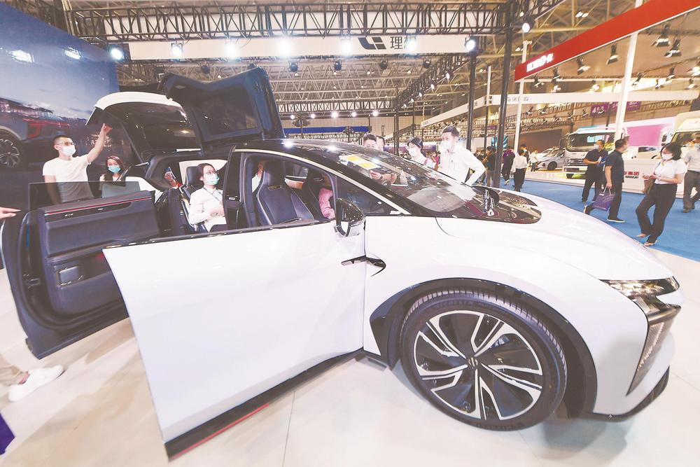 9月21日,2022世界制造业大会进入第二天,迎来众多市民参观。图为市民在体验新能源汽车。 本报记者 徐旻昊 摄