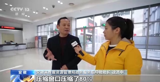 安徽省数据资源管理局政务服务指导处处长 徐济中:压缩窗口压缩了80%,从以前的136个现在压缩成20(多)个窗口,为群众提供服务。