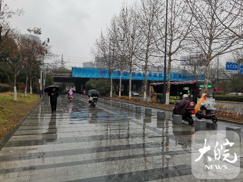 2月9日上午,被绵绵细雨覆盖的合肥街头。