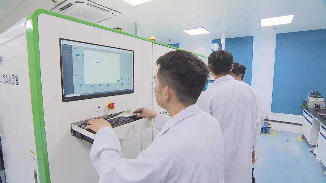 这里是合肥市长丰县中科合肥智慧农业谷,在我身旁就是国内首台套高通量土壤成分智能检测机器人装备,它能够对土壤中的有机质、氮磷钾含量等35项指标进行有效检测,为开展测土配方施肥、土壤改良提供精准数据参考。