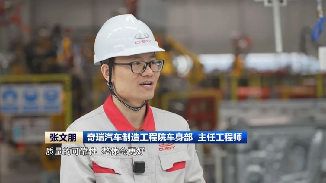 这里是奇瑞汽车的焊装车间,279台机器人正在给汽车“接骨”,精准覆盖车身7000多个焊点,焊接自动化率高达100%;这里是总装车间,两组AI机器人正在全方位地给每一台下线汽车“拍照”,车辆外观必须经过严格的视觉系统检测,没有任何瑕疵才能放行……像这样数字化、智能化的生产工艺,现在已经遍布整座工厂。