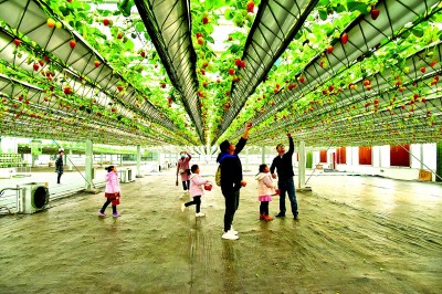 ①游客正在采摘长丰“空中”草莓。张忠建摄/光明图片