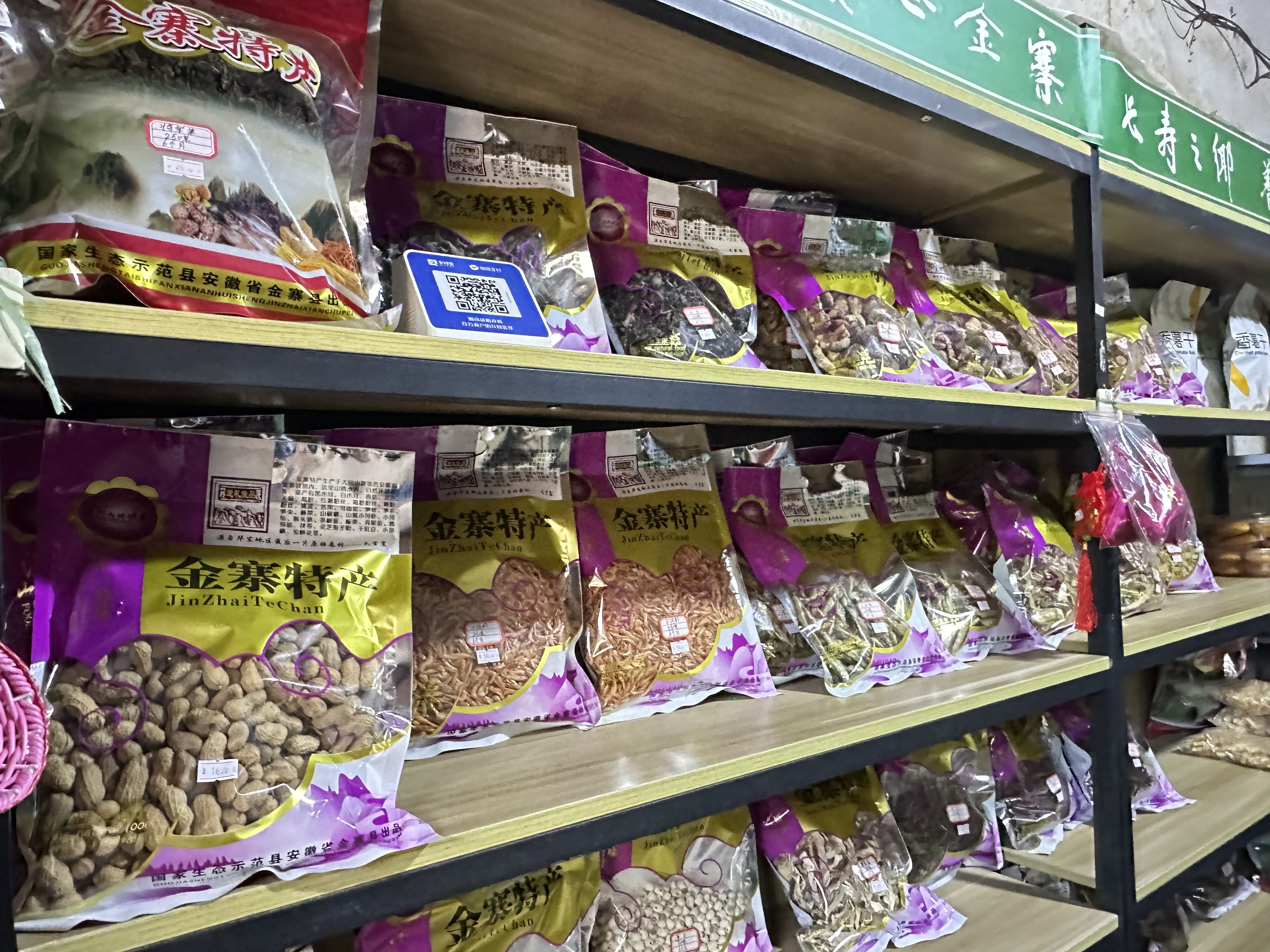 4月,是大别山最美的时节,杜鹃绽放,春茶飘香,游客也多了起来。陈泽申在老宅里摆上几个货架,把自家和周边邻居种的花生、天麻、野菜等地方特产包装后售卖,当上了店老板。小店销量不错,每年给陈泽申带来2万元的收入。