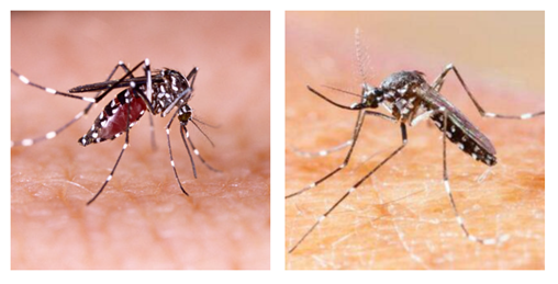图注:埃及伊蚊(左)、白纹伊蚊(右)