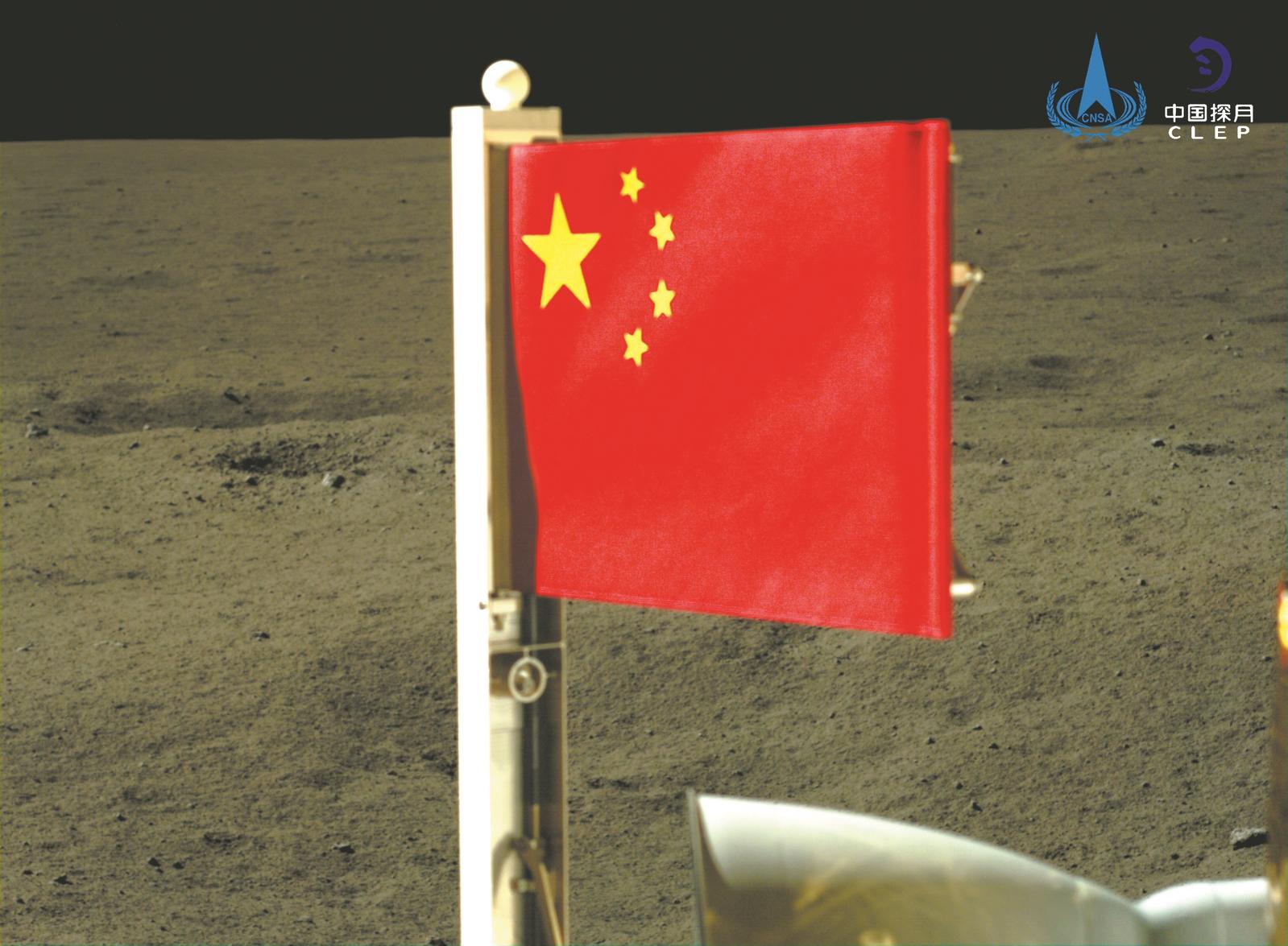 6月4日,五星红旗在落在月背的嫦娥六号探测器上展开。新华社发