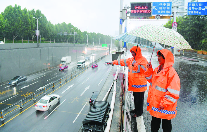 7月11日,蜀山区市政巡查人员在查看南二环下穿有无积水,确保隐患第一时间发现、上报、处置。 陈三虎 摄