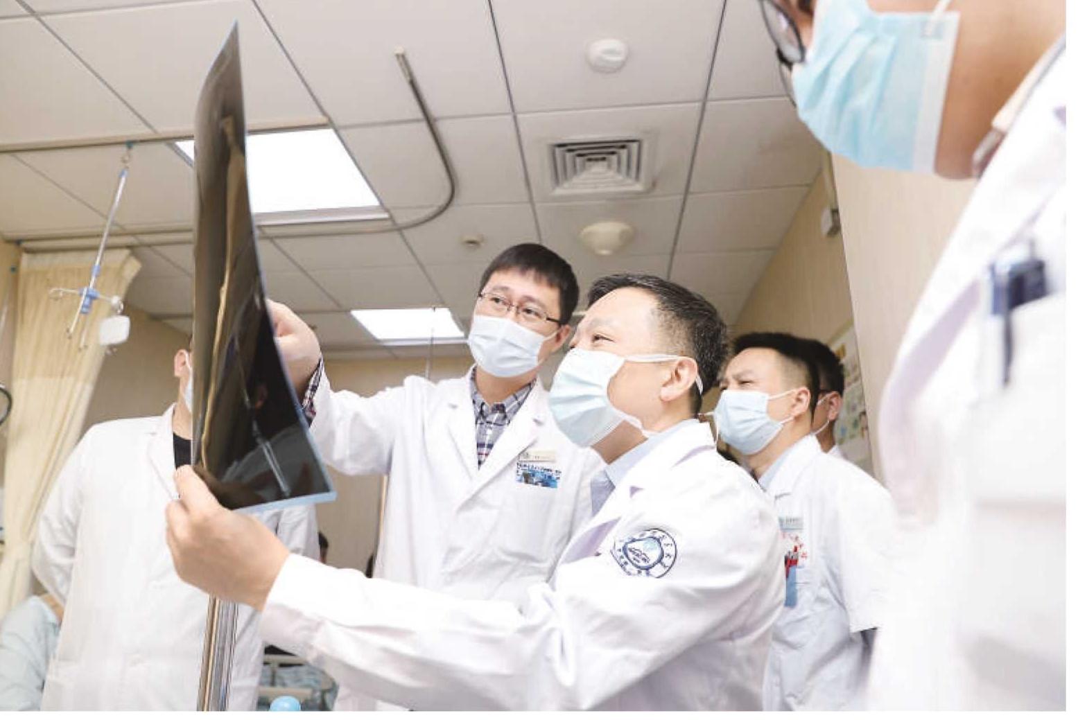 上海市第六人民医院安徽医院院长、上海市第六人民医院创伤骨科主任李晓林在查房。 方咏 摄