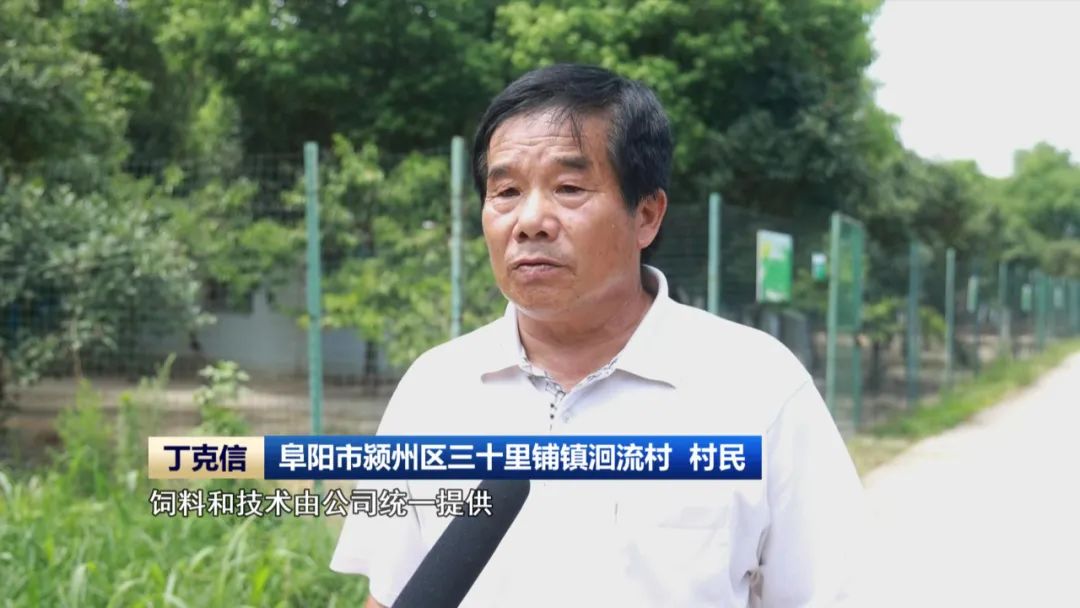 在位于阜阳市颍州区三十里铺镇洄流村的金牌产业园里,村民丁克信正在喂养林下养殖的蛋鸡。以前丁克信一直在外打工,得知村里引来了蛋鸡养殖企业,丁克信选择了在“家门口”就业,负责养殖基地里的6000只鸡。