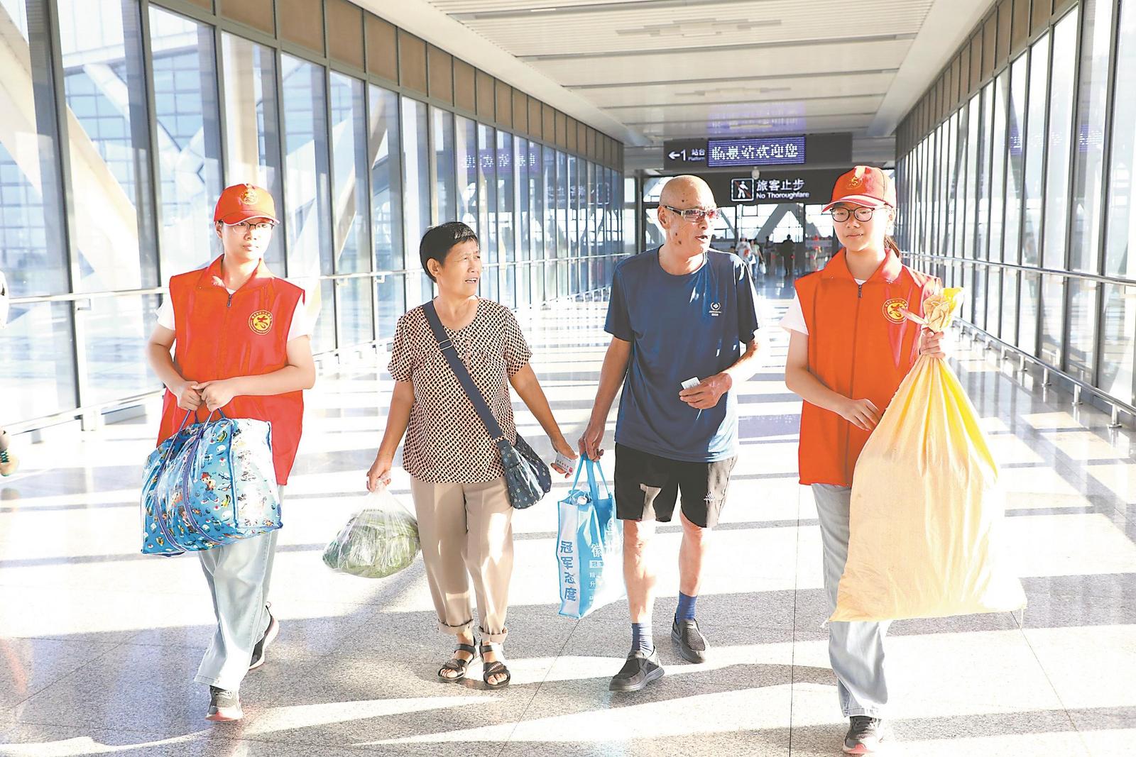 李智琳、李慧琳在临泉县高铁站参与志愿活动,帮助来往旅客。