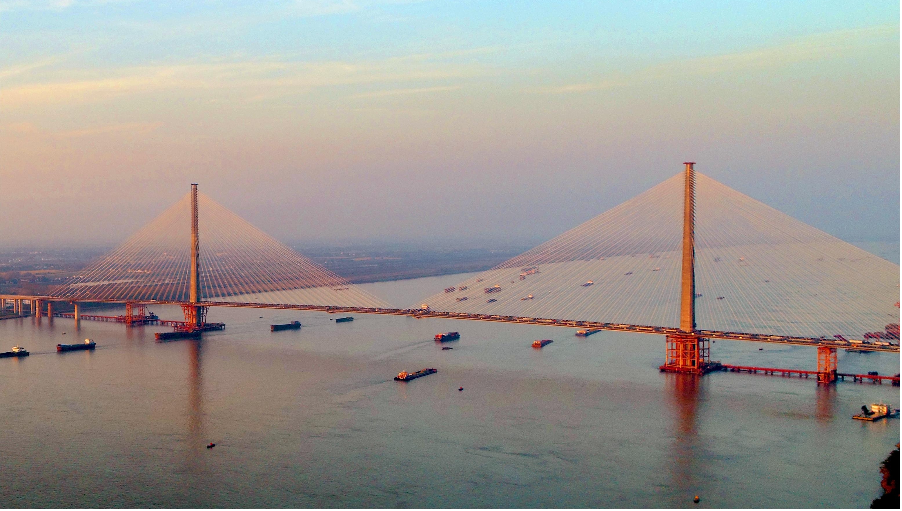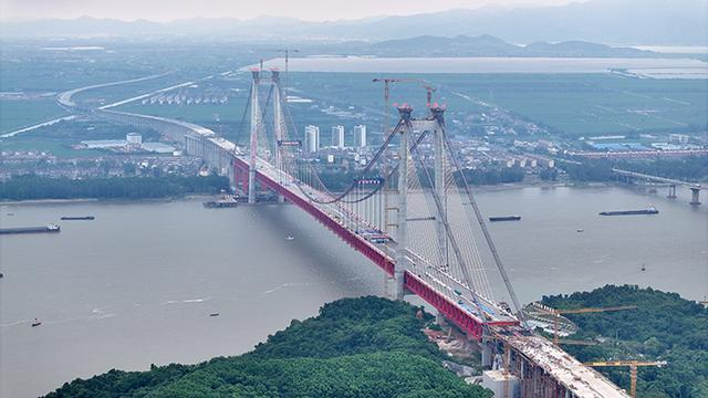此外,该桥还采用国际首创的同向回转鞍座锚索体系,为长江上第一座双分肢柱式塔,首次在塔梁连接处采用斜置式阻尼装置、首创全漂浮独柱塔体系、首次运用所有梁段对称悬拼工艺,最大悬臂长度达到397米。