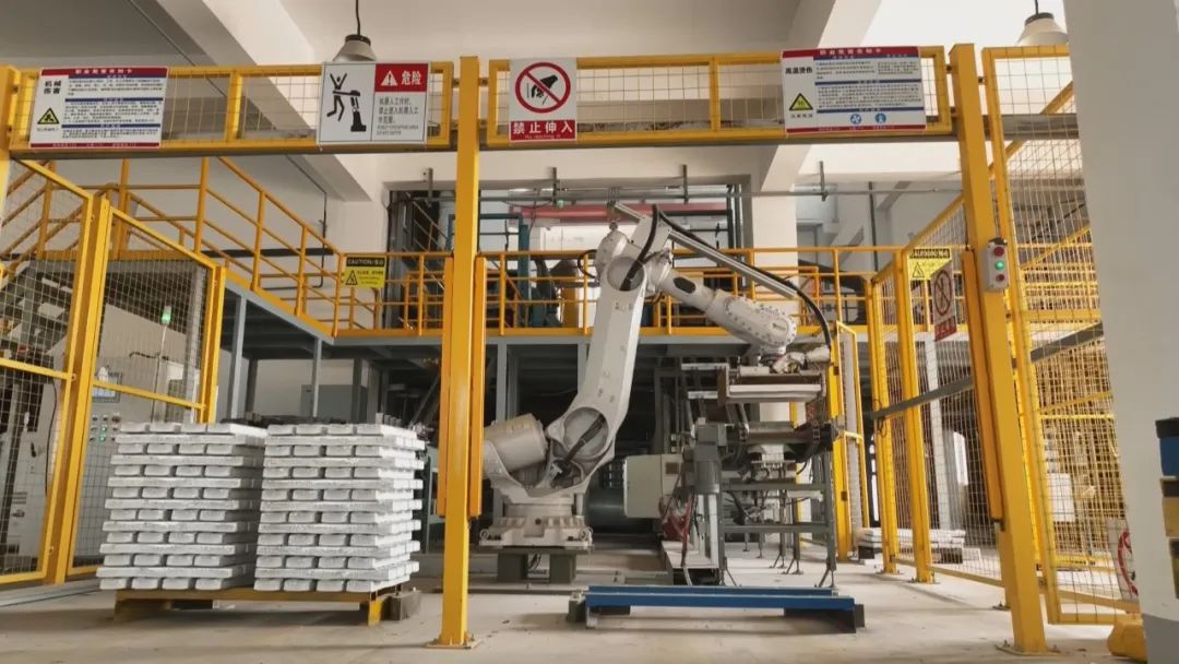 在池州市青阳县的安徽宝镁轻合金项目的浇筑生产线上,一块块镁合金锭正在被生产出来。目前项目已经启动了3条这样的生产线,每年将有一万吨的镁合金锭产出。