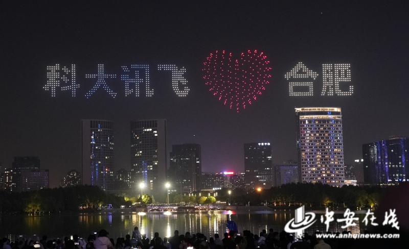 科大讯飞在合肥天鹅湖上演1024架无人机表演