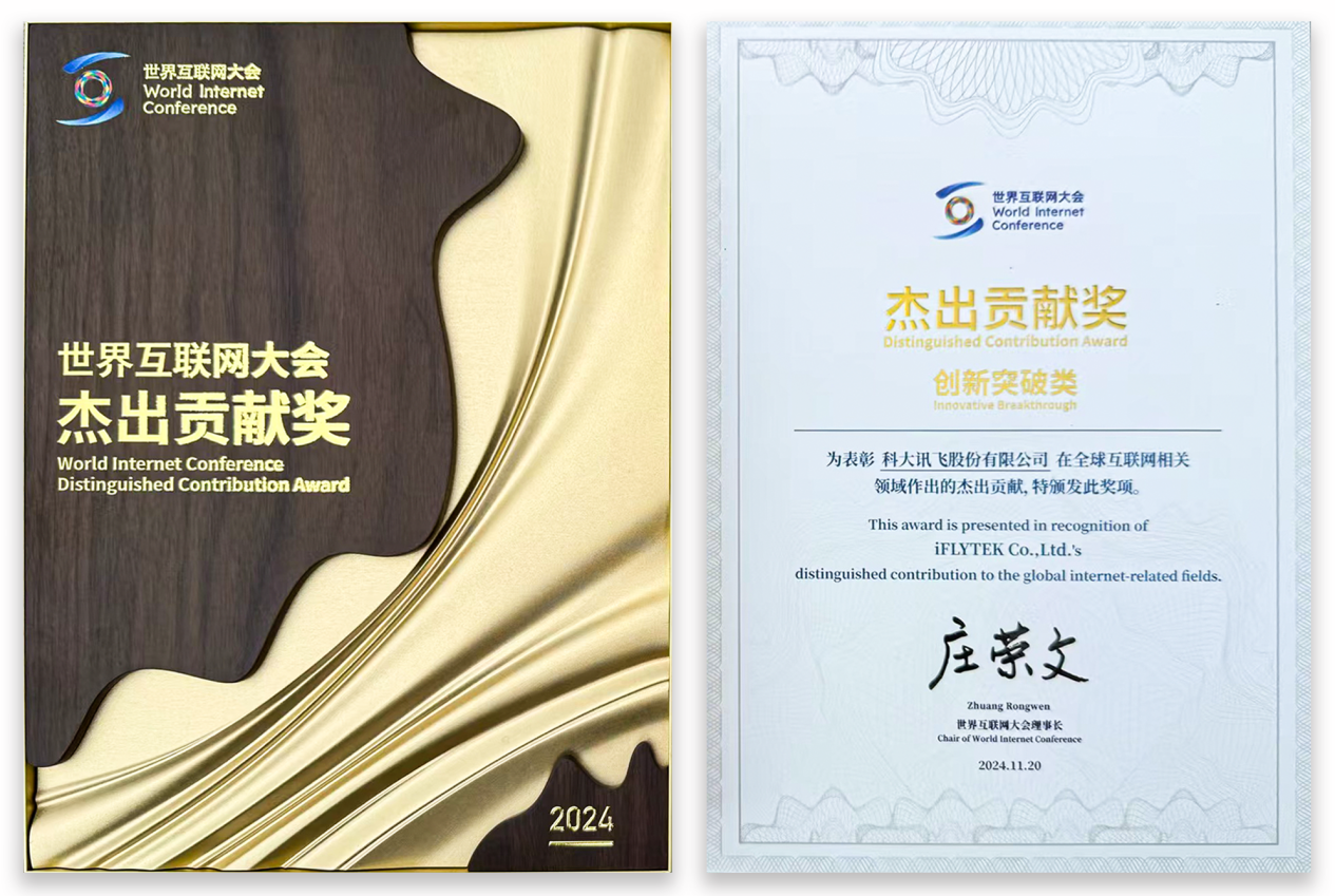此次,科大讯飞获得“2024年世界互联网大会杰出贡献奖-创新突破类”奖项,源于其针对面向智能涌现的通用人工智能大模型研制进行了攻关型研究,创新性提出了自主可控的“1+3+1”大模型全链条关键技术及应用技术体系,攻克了多个技术难题。同时,科大讯飞还构建了AI智能服务体系,持续提升客户服务满意度,并持续赋能千行百业并取得广泛成效,助力民生和产业高质量发展。