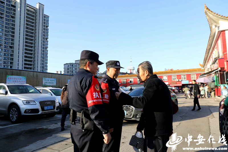 菜市场早上人来人往,异常热闹。佩戴红色执勤袖标的他们,在人群中巡逻。遇到熟人便打招呼,不时提醒老年菜农保管好随身携带的财物。返回市场正大门附近,迎面而来的一对年迈夫妇看到巡逻警察经过,竖起拇指点赞。