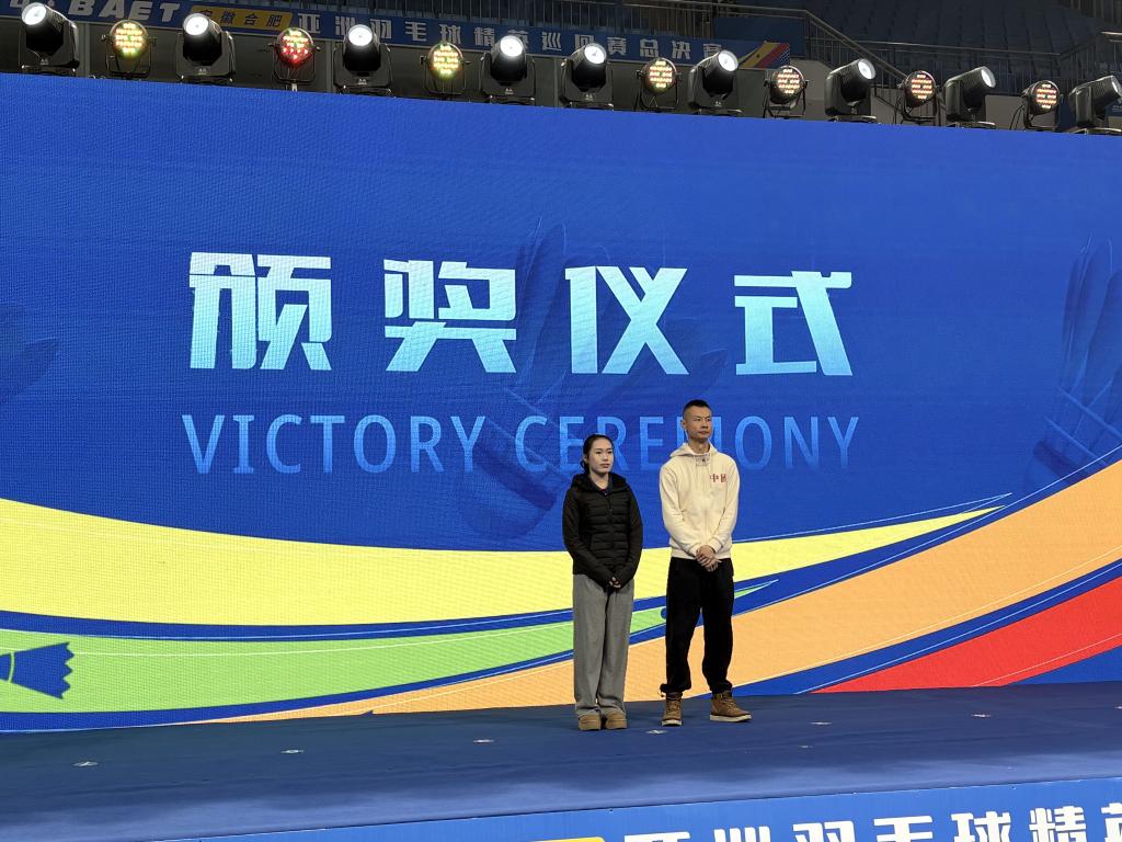 12月15日,徐晨(右)和搭档雷琪羽在颁奖仪式上。新华社记者 周畅 摄