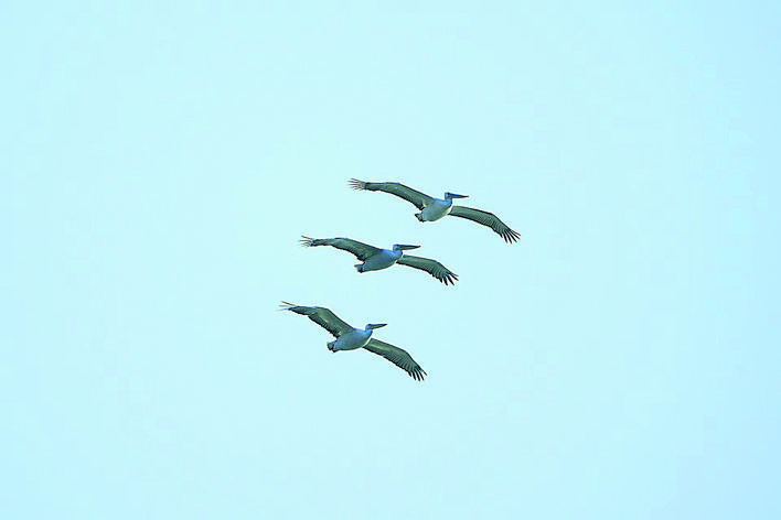 1月6日,巢湖边拍摄到的卷羽鹈鹕一家。何斌 摄
