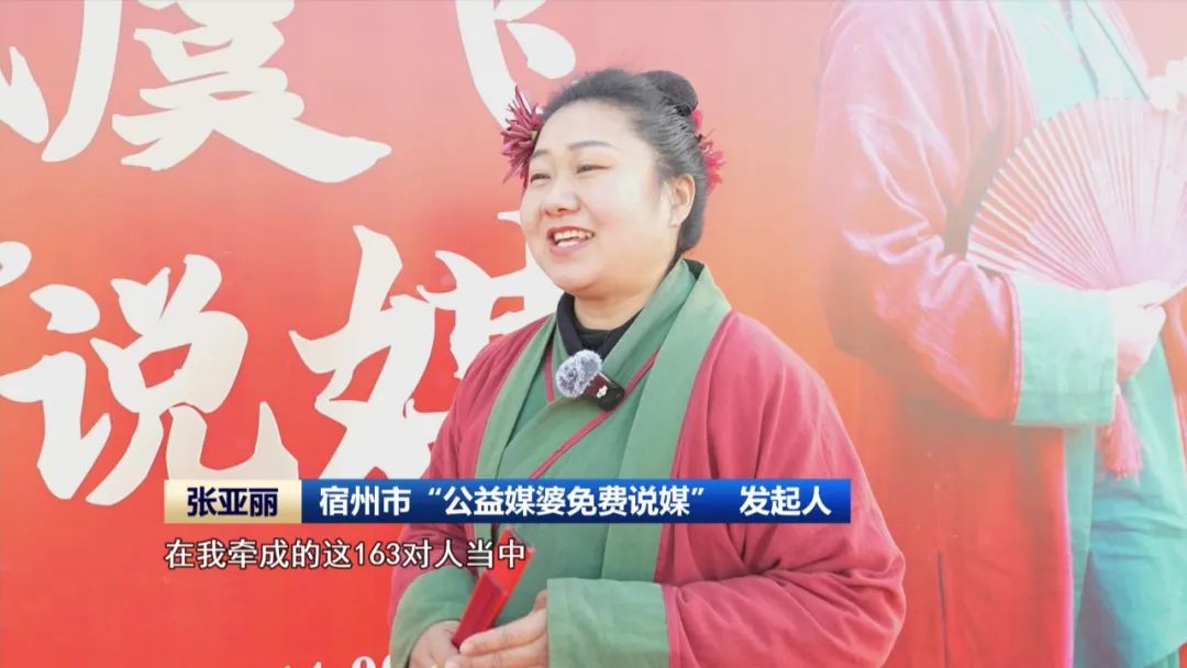 为破除“媒礼高、彩礼贵,婚礼操办大花费”的陋习,宿州市积极探索免费婚介模式,充分发挥“公益媒婆”在引领婚俗改革中的潜在作用。张亚丽是“公益媒婆免费说媒”发起人,她为男女青年牵红线的时候,鼓励大家摒弃传统陋习,倡导婚事新办。