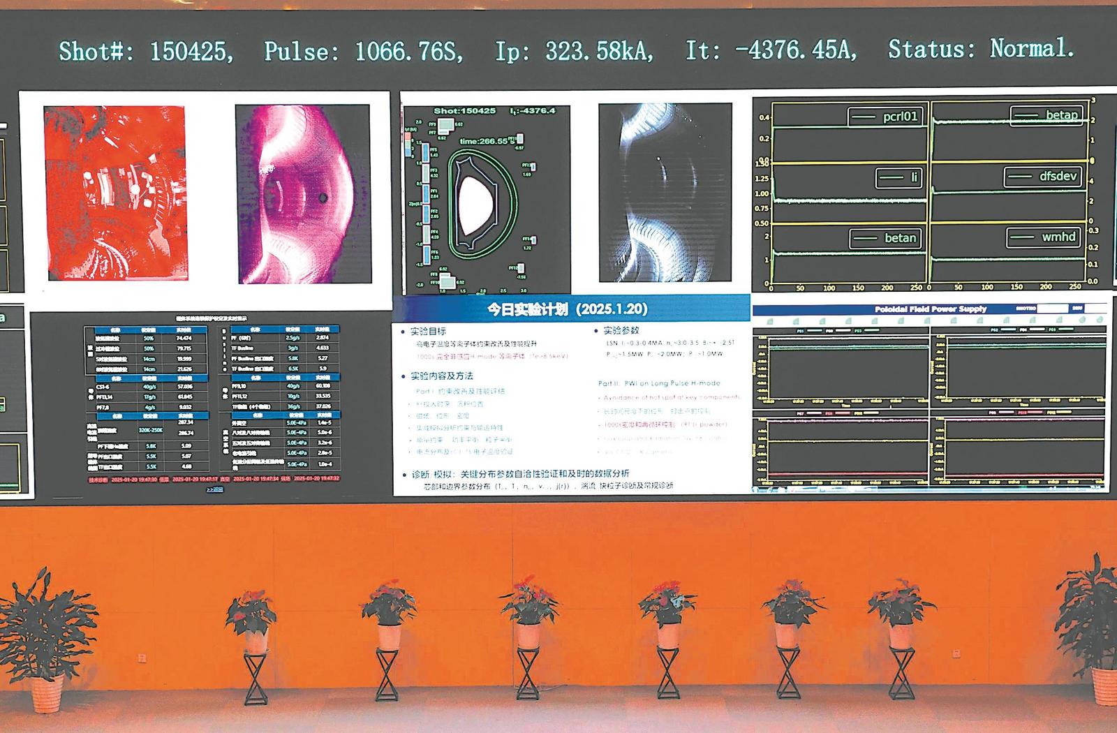 1月20日,在EAST控制大厅,实验成功后的实时显示大屏。