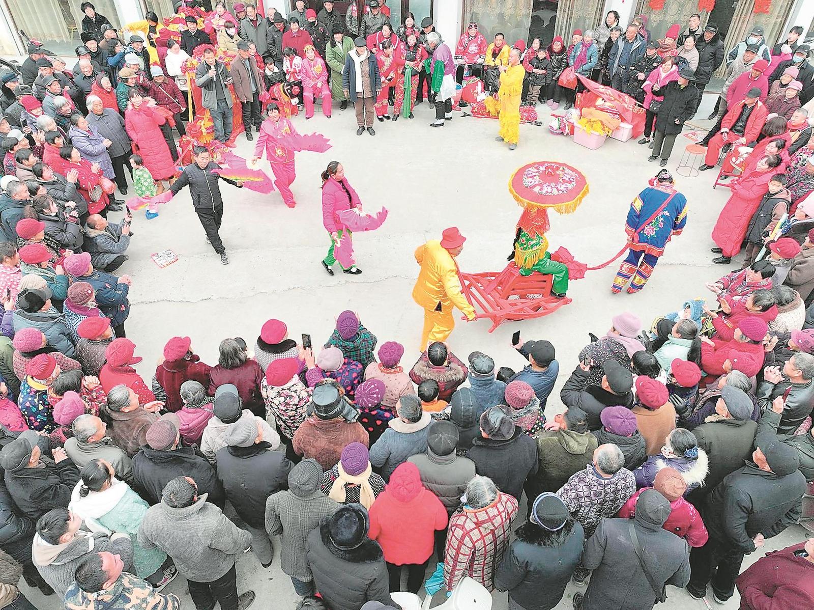 日前,在阜阳市颍州区三塔集镇赶大集活动现场,许多群众在观看民俗表演。特约摄影 王彪 摄
